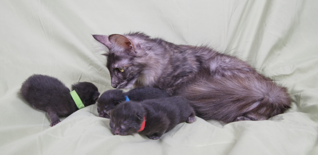 Natt till måndag 2026-03-09 föddes tre små fina Angora-pojkar efter Maja (JCH, KCH Ayna’nin Wanika, TUA fs) och Pelle (JCH, KCH FI*Felesin Cisse Häkkinen, TUA d). Alla är pigga, friska och svarta – det är vår första kull efter alla år där vi måste använda halsband för att hålla isär dem! En, kanske två, är smoke så med tiden kommer det bli enklare att se skillnad på dem. Det är bra fart på de små och föra tt vara en angora-kull är de väldigt pratsamma. Maja är en suverän mamma som med lugn och fast hand (tass?) tar hand om de små.
